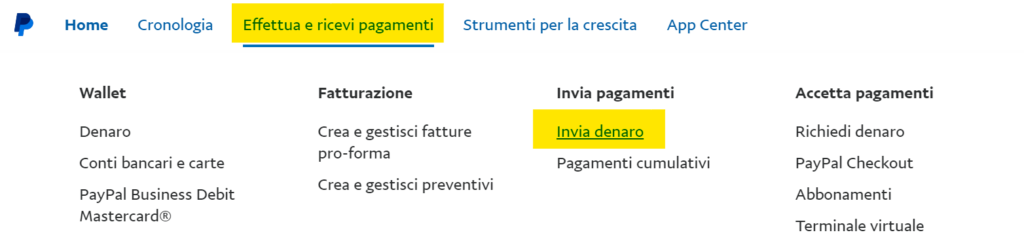 Per effettuare il pagamento puoi seguire la procedura “invia denaro” (di importo pari a quanto indicato nel preventivo che vuoi confermare) al nostro account Paypal: